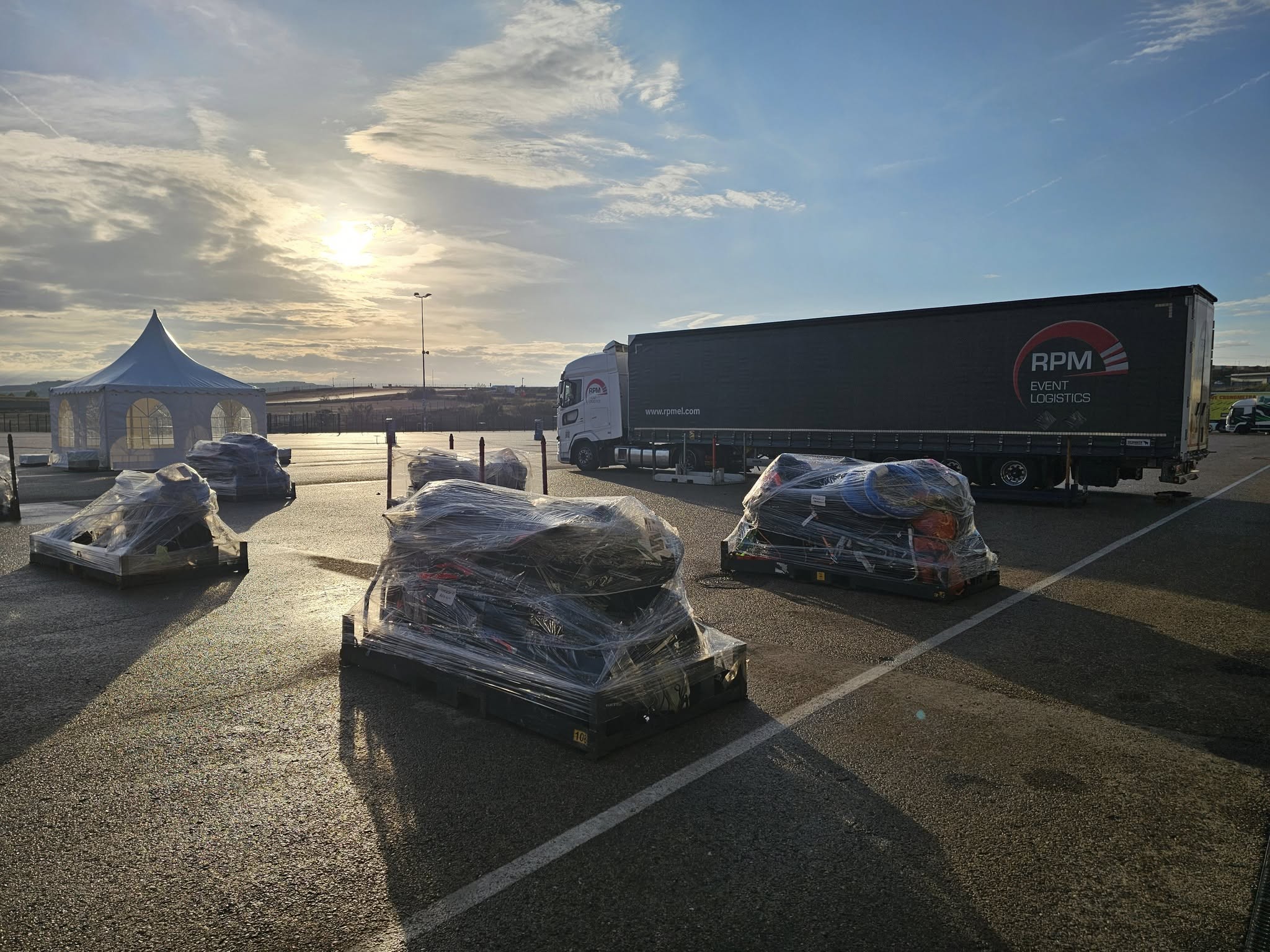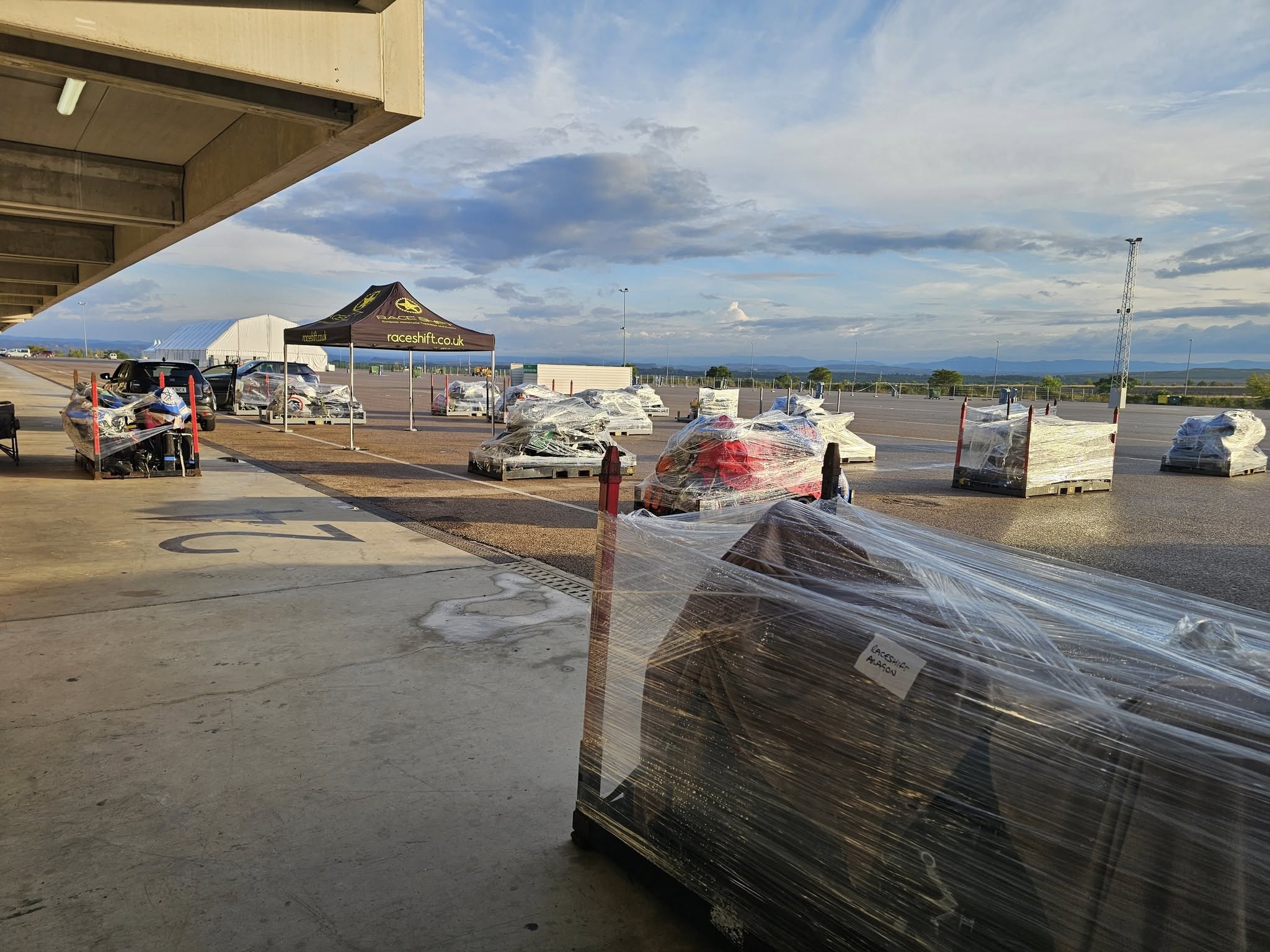 - Setting up at the circuit the evening before Day 1 on track